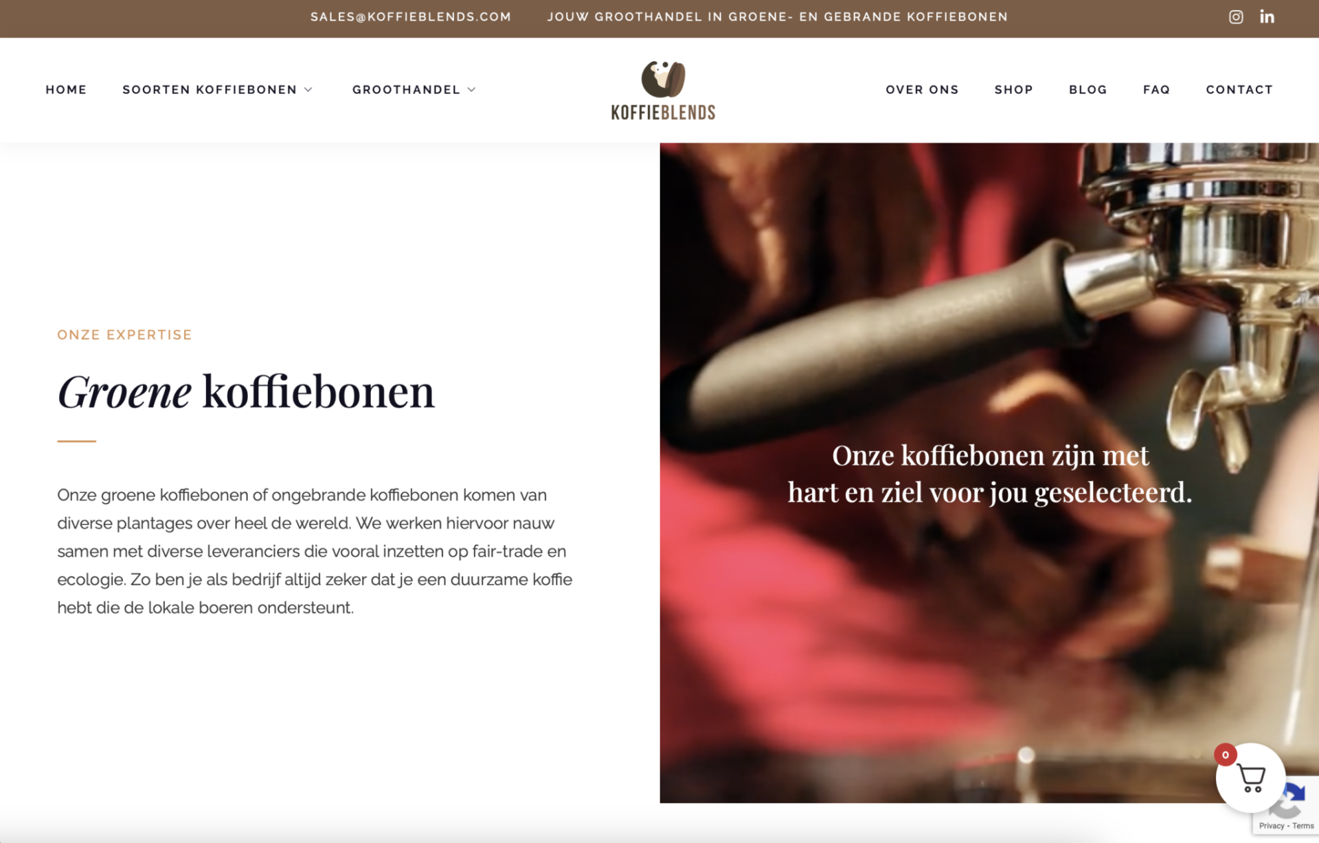 Koffieblends is een uniek merk dat duurzame koffiebonen aanbiedt rechtstreeks van de leverancier. Ze wilden vooral hun merk vermarkten. Ik maakte de webshop en schreef alle content voor een goede positie in Google.